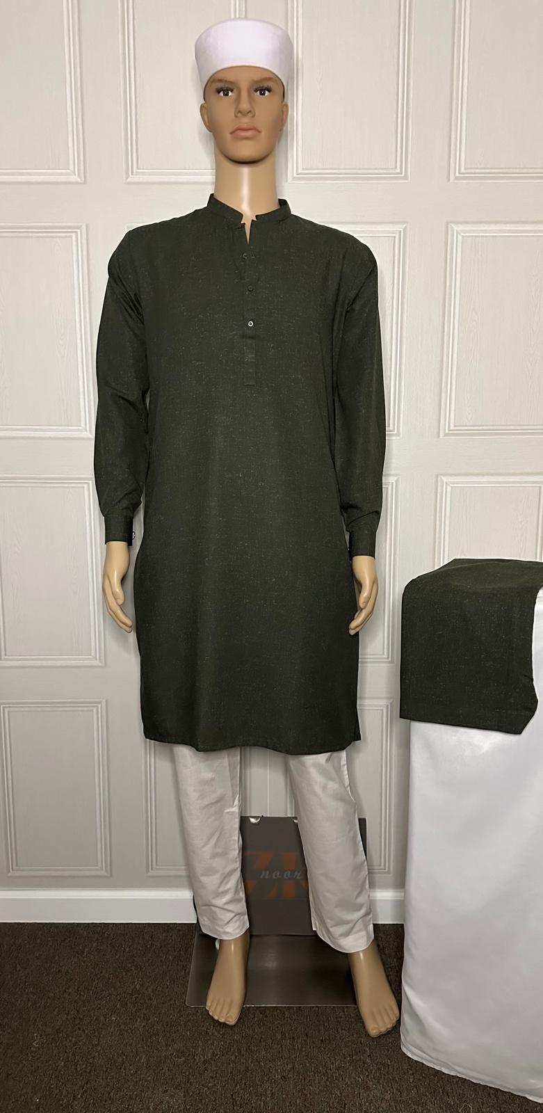 This is an elegant wear for relaxing evenings, a striking full suite (that comes with matching shalwar) for any occasion.