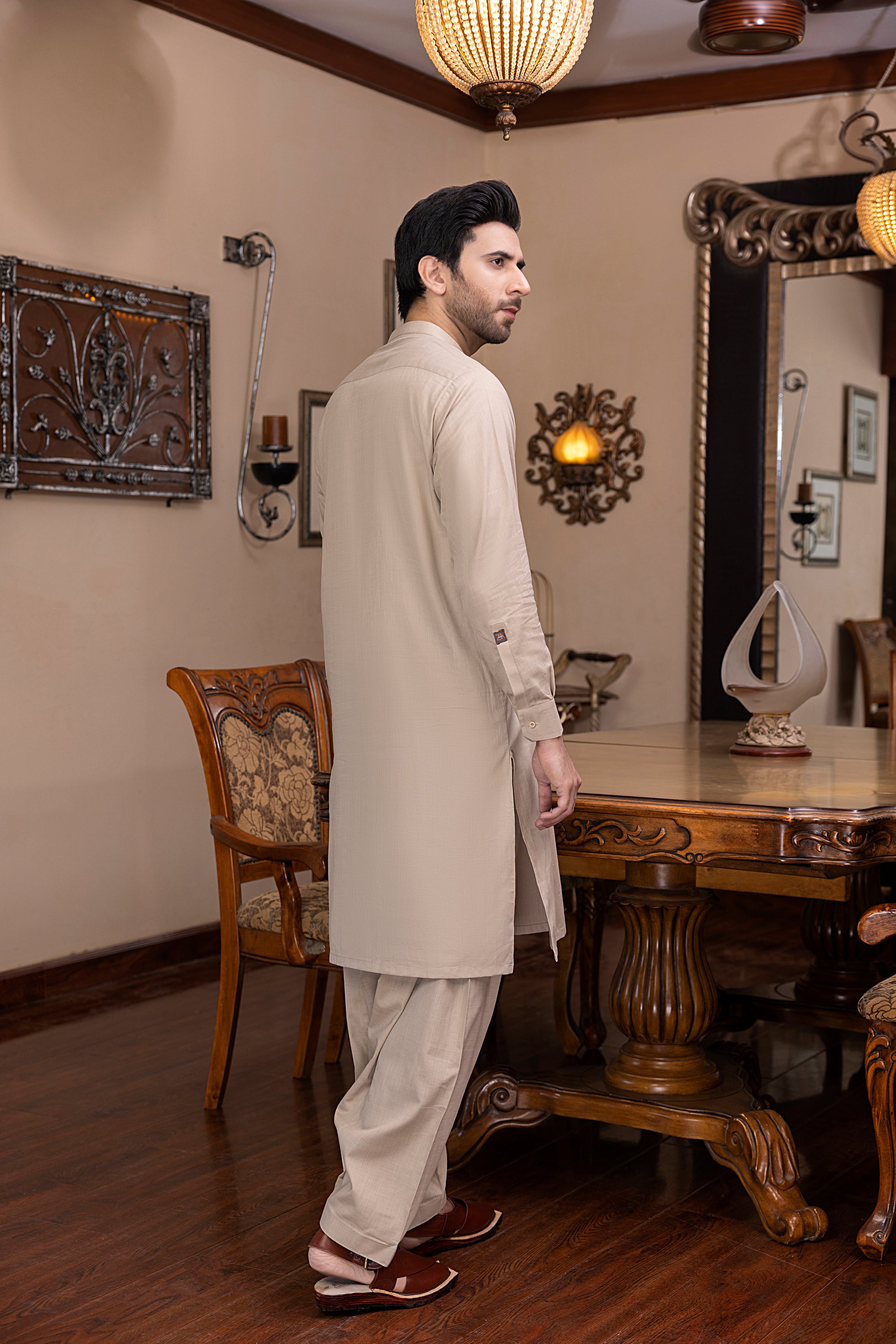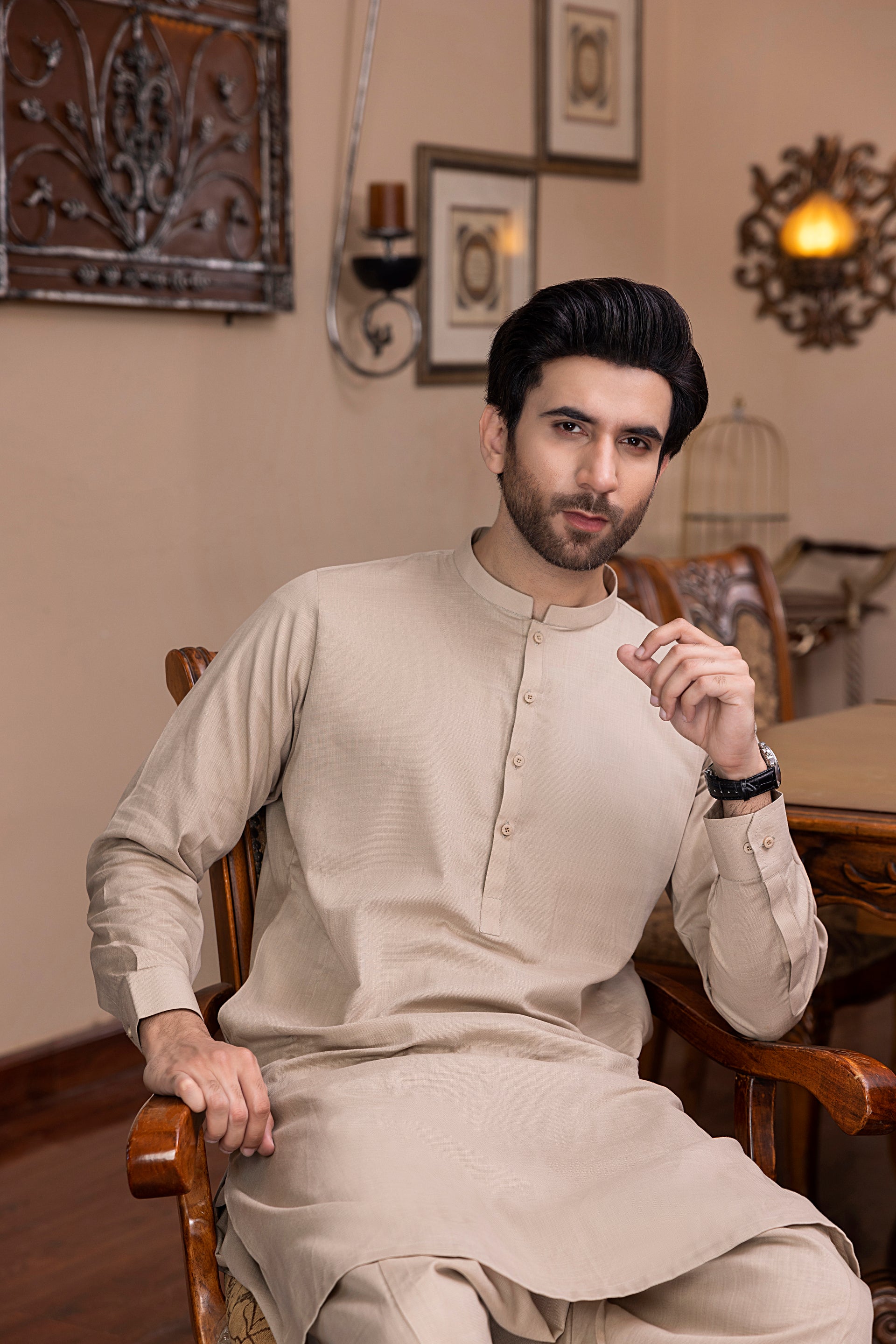 Evening Elegance: Khadi Shalwar Kameez in the Shade of Off-White