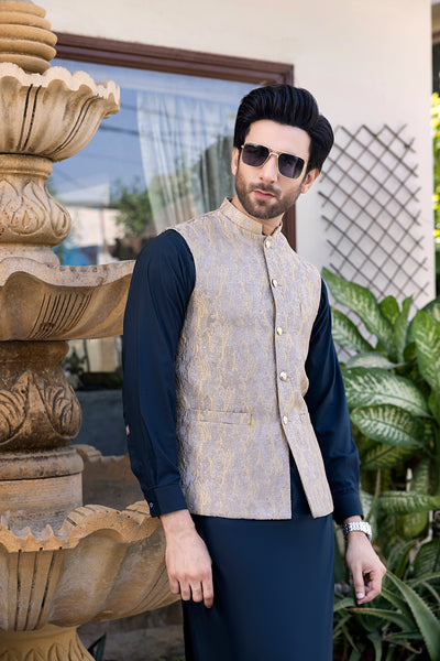 Stylish Beige Patterned Waistcoat - Great formal party wear