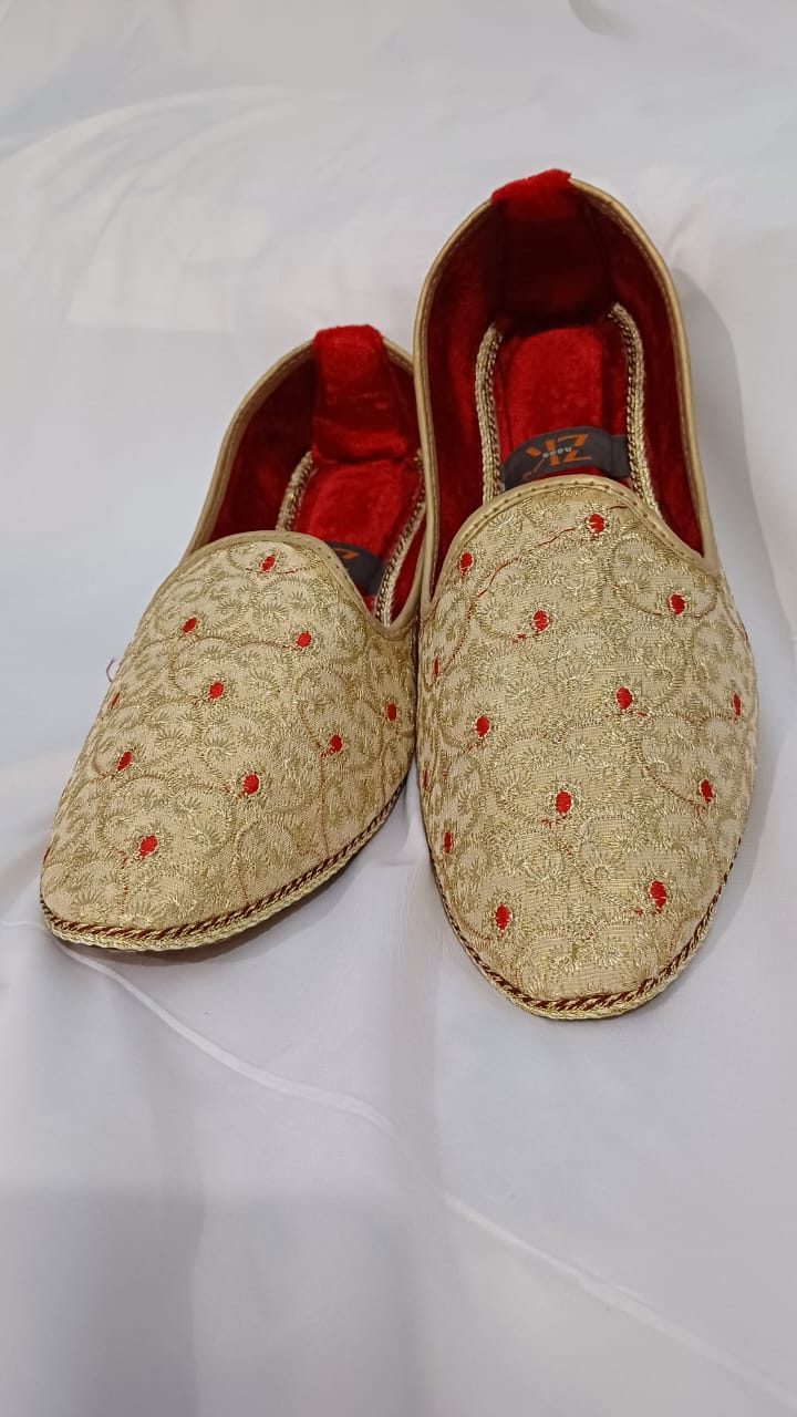 Elegant khussa in gold and red design from zknoor designs. This khussa provides you with style and elegance with comfort