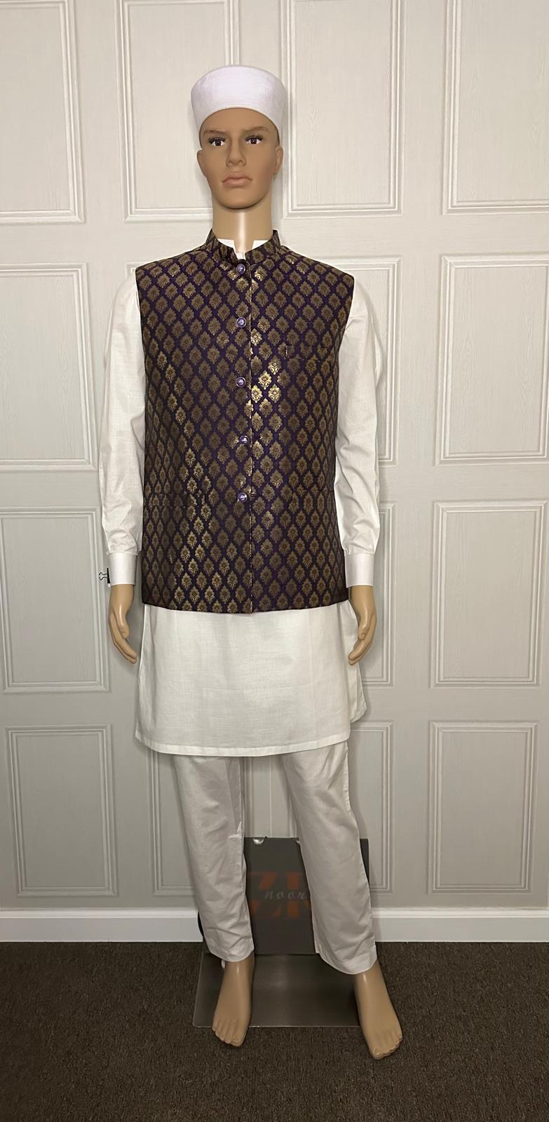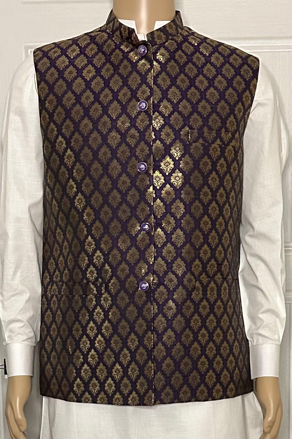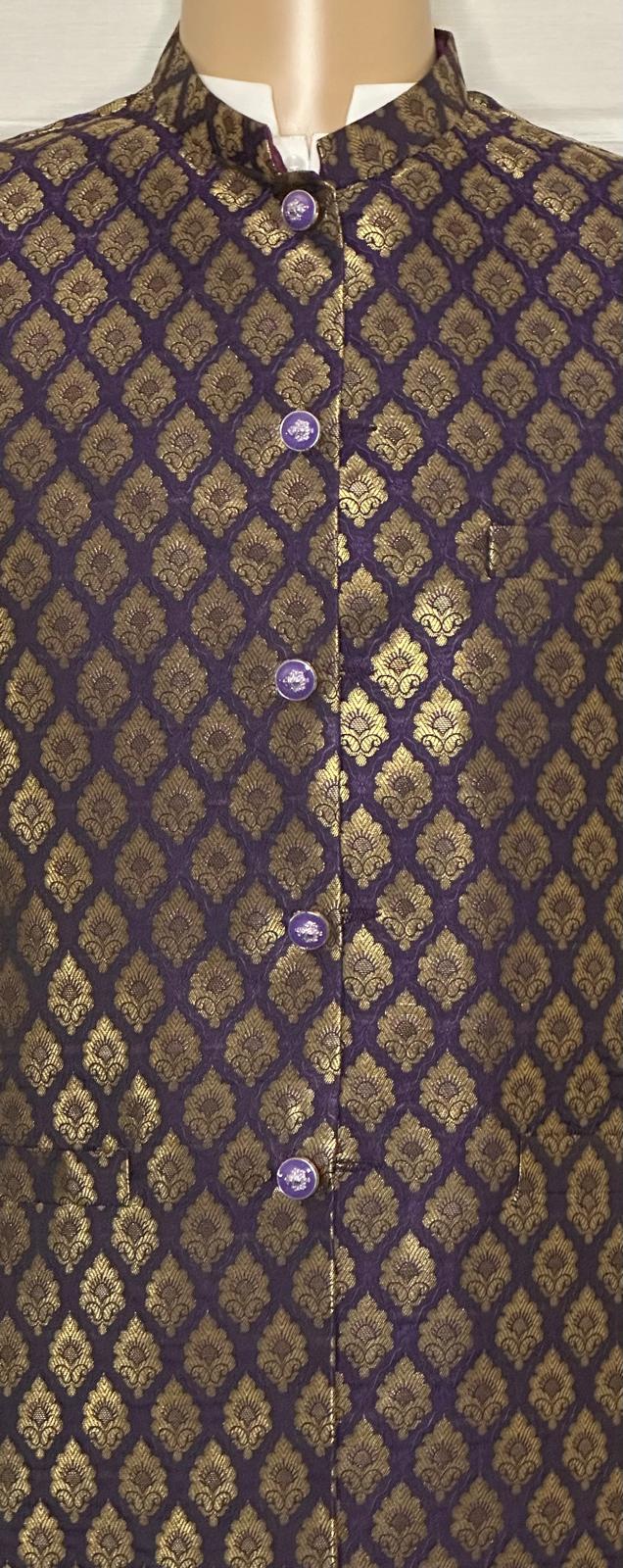 Waistcoat in purple and Gold Textures